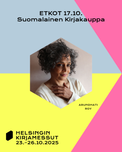Helsingin Kirjamessujen etkojen tähtihaastattelussa Suomessa vieraileva intialainen kirjailija ja kansalaisaktivisti, Booker-palkittu Arundhati Roy. Royn tuore romaani Turvani ja myrskyni (Otava) on aseistariisuva muistelma äiti-tytärsuhteen luonnonvoimista. Sen on suomentanut Hilkka Pekkanen. Roytä haastattelee Helsingin Kirjamessujen ohjelmajohtaja Ville Blåfield. Haastattelun jälkeen kirjailija signeeraa. Yhteistyössä Suomalainen Kirjakauppa ja Otava.