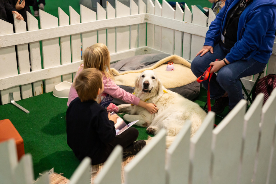 Tapaa lukukoira lastenalueella