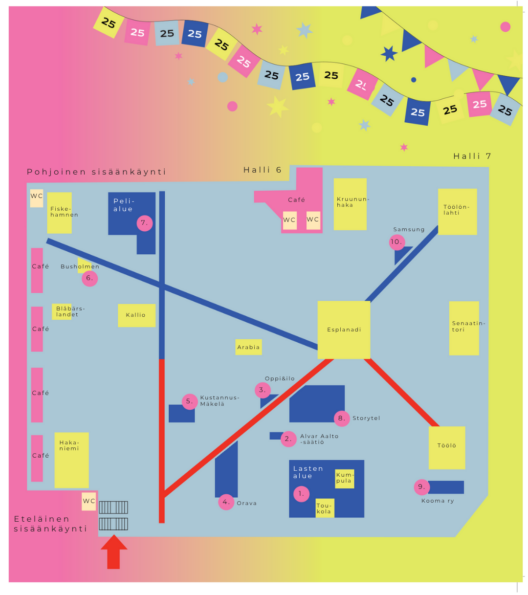 Lastenkierroksen karttoja on jaossa Messukeskuksen sisäänkäynneillä.